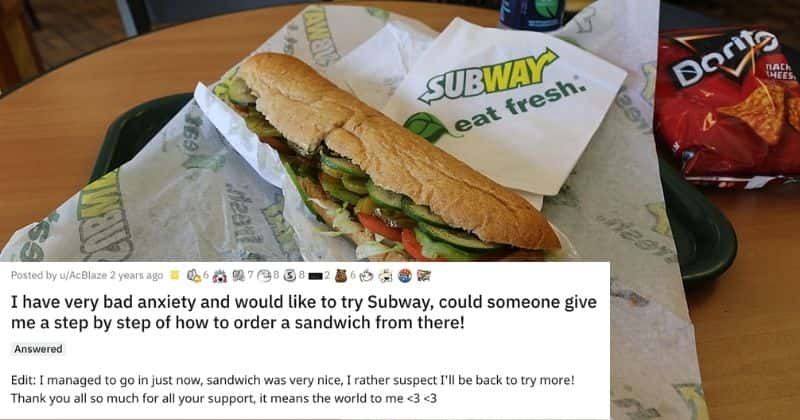Reddit user asks for help ordering Subway because they have anxiety and gets wholesome responses