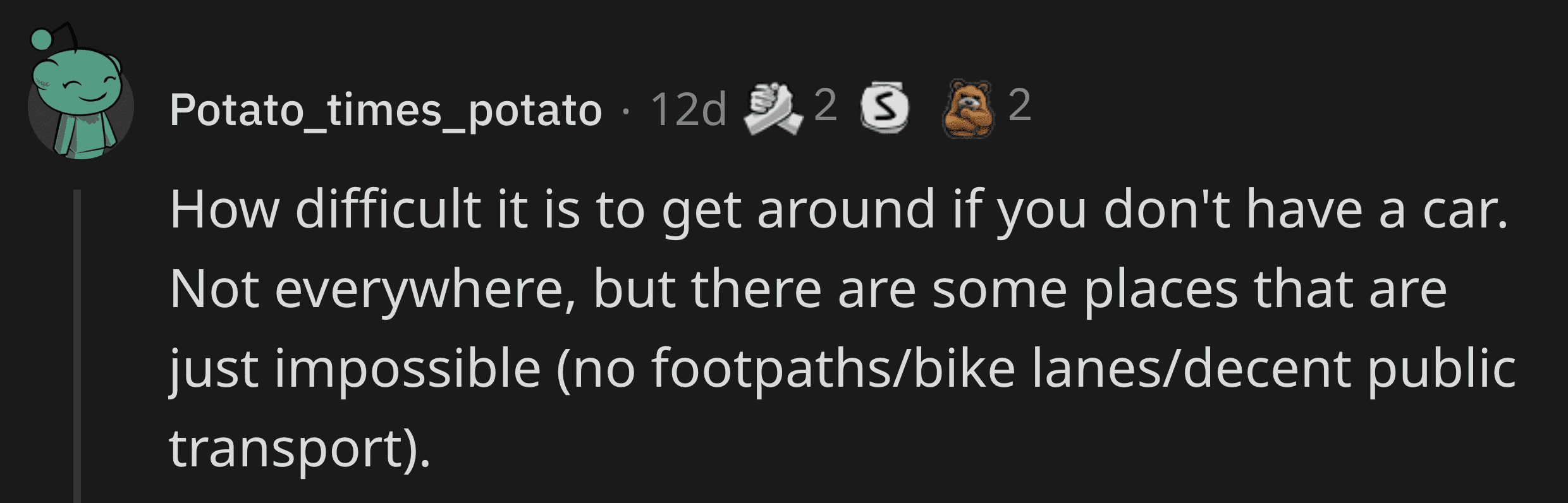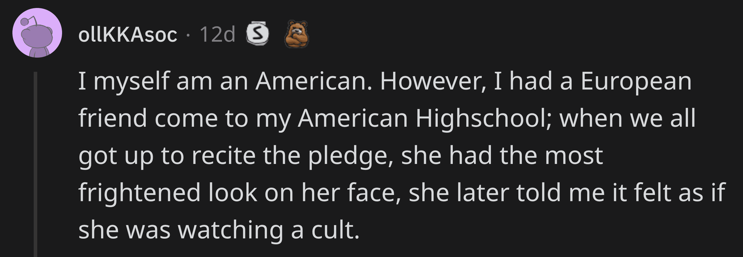 "Perhaps the extreme polarization in politics. I'm used to having many parties, which gives more nuances. In the U.S. it seems politics became a team sport, and you end up with the 'you're either with us or against us' mentality a lot easier. I think that is very detrimental for the country, but I guess there's no realistic way out of that, nor any will from either of your leading parties to do so." — u/normalguy_AMA