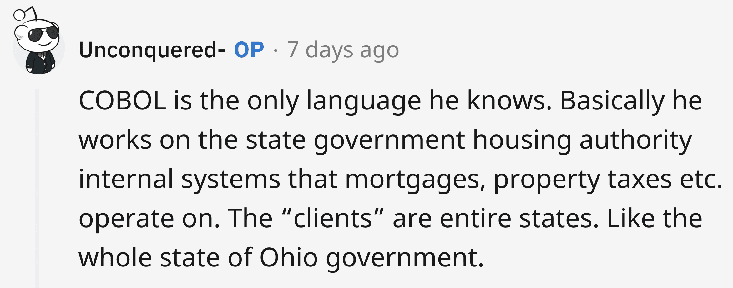 The comments section overflowed with words of appreciation and awe, while some even suggested that the poster's dad could probably leverage the situation for even more benefits or higher pay. "Go, Dad! I hope he gets everything he wants AND more," commented u/BurntOutOnlyChild. "One of the inlaws is an old-school COBOL programmer who was enticed out of retirement with a fat offer. He made them pay an upfront retainer for hours that could be replenished if they needed him more. No prepaid hours, no work. He kept it simple and to the point," wrote u/powerandbulk, to which u/Unconquered- said that their dad, too, is a COBOL (Common Business Oriented Language) programmer. "Reminds me of a conversation I had with a friend: She was working as an accountant for a grocery store. They were paying her minimum wage ($7 an hour). I told her she could get an entry-level job to quadruple her salary. And with her years of experience, employers would jump at giving her opportunities," shared u/Wizywig.