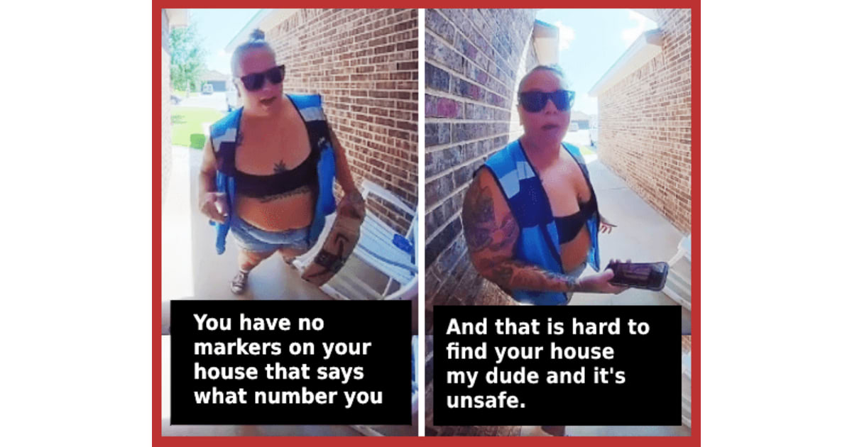 "You have no markers on your house that says what number you are," she said into the camera after dropping off the package. "And that is hard to find your house my dude and it's unsafe, honestly." She then went on to explain why it was unsafe not to have your house marked. "What if you needed medical assistance and the paramedics didn't know your town well, come on," she said before signing off, "Have a great day!"