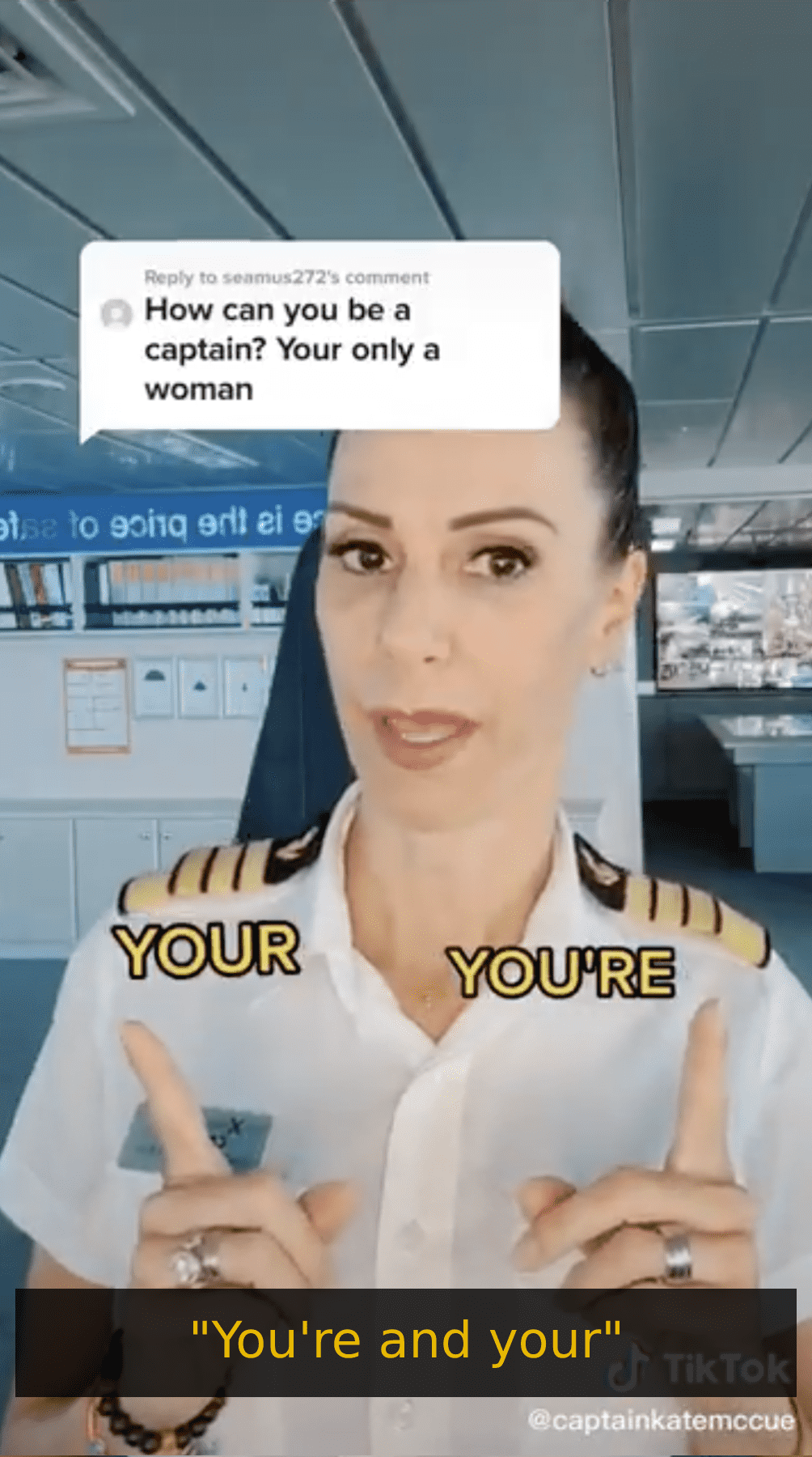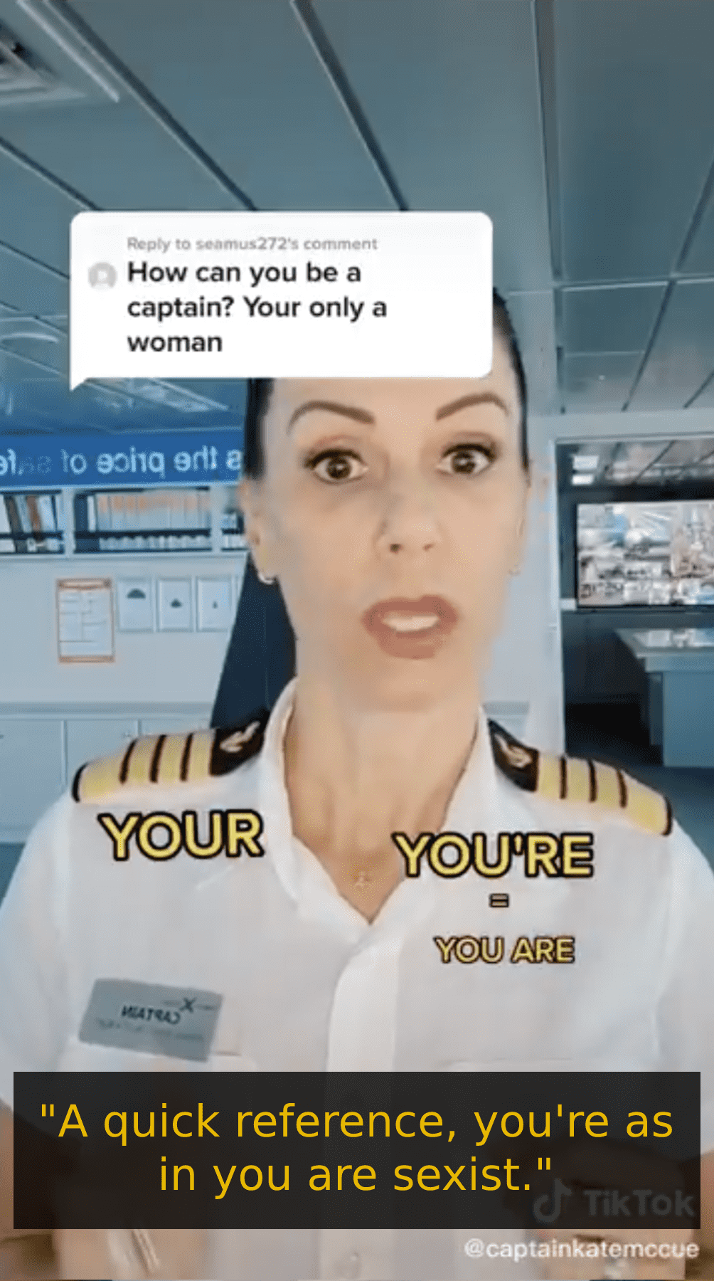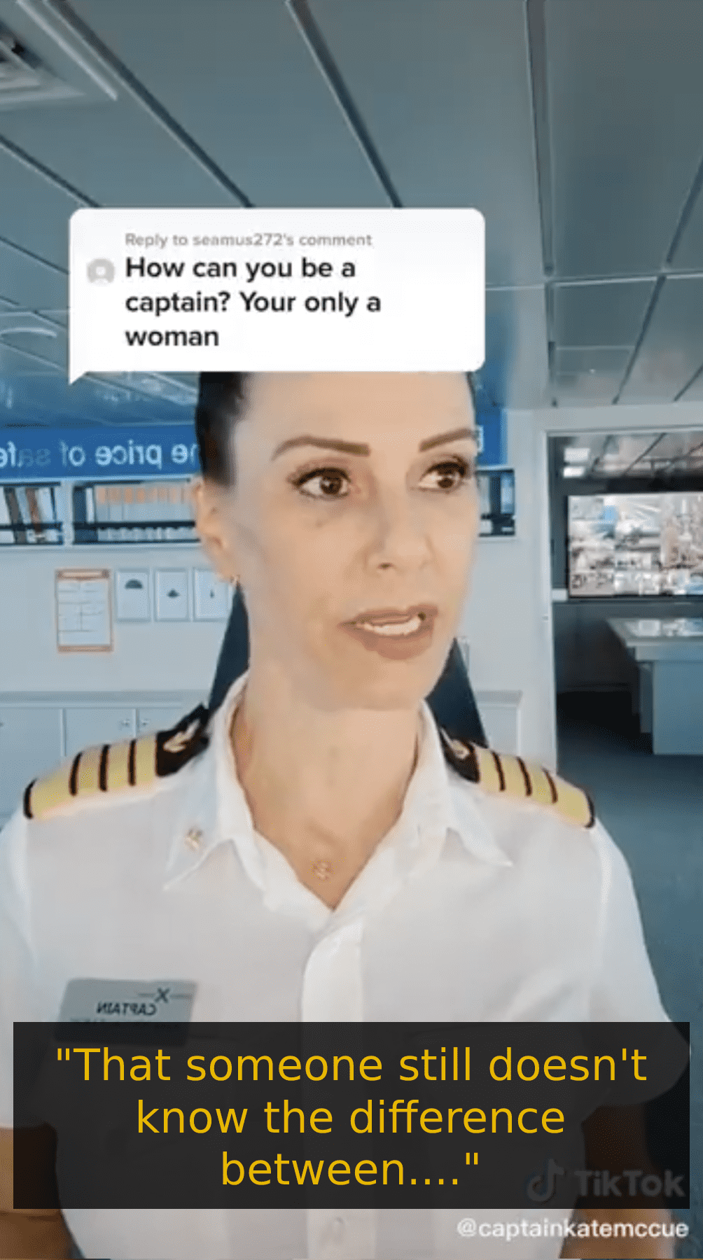 That is, until she came across one particularly sexist comment that read: "How can you be a captain? You're only a woman." Rather than ignore it like usual, something about the comment urged Capt. McCue to respond to it with an epic comeback on TikTok.