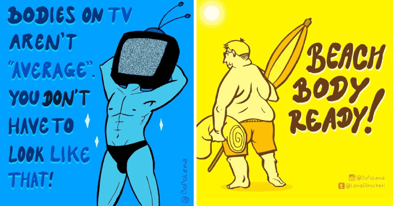 Men also feel the pressure to look 'fit' and have sculpted bodies as depicted in the media but these illustrations remind men to love their bodies.