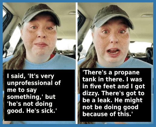 After entering just 5 feet into the home, she realized the gas tank was leaking and alerted the customer’s daughter.