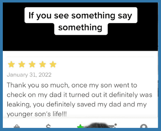 The next day, she left a comment revealing how she had indeed saved her father's life. "I'm crying because she commented this morning. And I'll show you. 'Thank you so much, once my son went to check on my dad it turned out it definitely was leaking, you definitely saved my dad and my younger son's life !!!' She then concluded, "So that being said, I'm just an Instacart worker. But if you see something, say something and I did. I'm so happy that I did and I'm so happy that he can live a better life." Tik Tok users praised her for realizing something was wrong and acting on her hunch.