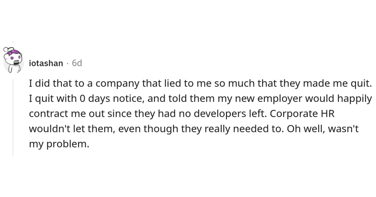 "My manager said it was because the ten minutes (I ran the analytics) it takes me to respond to an email was too slow," they wrote, leaving them shocked. "That was a bullsh*t reason. To be honest, I was furious," they wrote. Aware of the NDA they were made to sign on taking the job, they turned it around on the employers. "We do the exit interview with HR and then she asks me to send over any documents I had (we worked on personal computers remotely) and describe where I was at in regards to our next event and our speakers. NDA's are really common in this field, I've signed one at every job I've ever worked. But this employer's NDA had a clause in it that worked to my advantage," read the post.