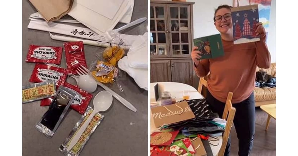 "Michaela keeps everything from every takeout restaurant we have ever ordered from," Alex notes. "There is a whole drawer full of this stuff. She also keeps all of our gift bags, which is great for holidays, birthdays, and gift-giving, making it a lot easier.'
