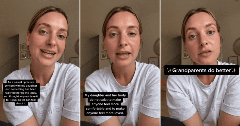 Mom explains why it is important for grandparents to ask for consent before hugging and kissing their grandchild