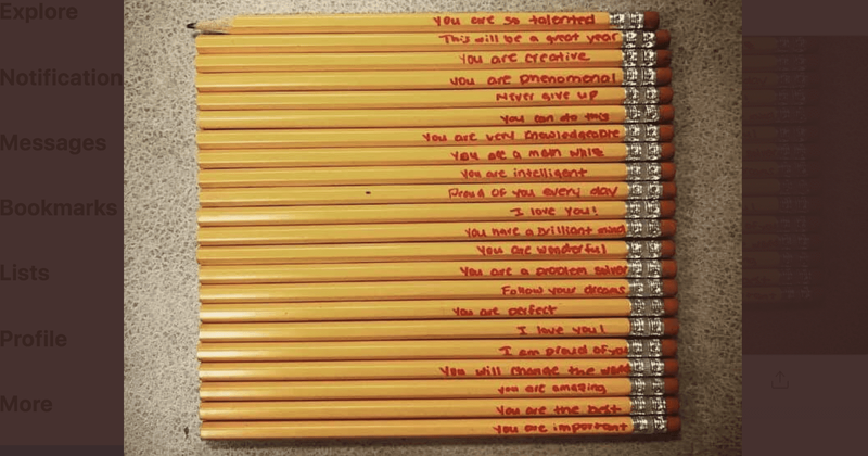 "To hear, or in this case, read a message from their parent daily that says, 'you are talented, intelligent, wonderful, amazing' and 'I love you, I’m proud of you, you have a brilliant mind,' reminds them of their value and self-worth," she added. "I hope that more children will have these pencils or some type of positive daily message for the upcoming school year. I know I will definitely be writing on the pencils in my classroom this year."