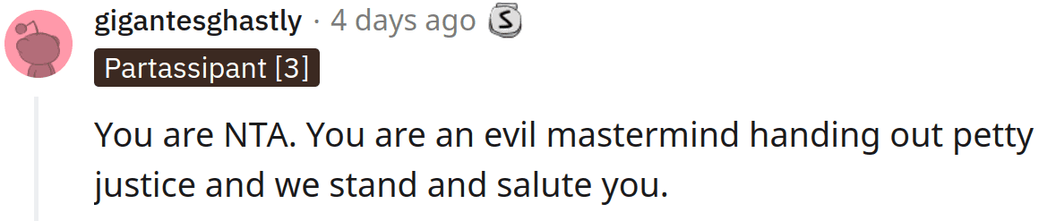 Some Reddit users supported her, while others felt she took it too far. "This is hilarious. I was in the same position as you. I’d watch out about your stepdad, seems like he’s working on turning your mom against you. He started in the same way with me, by leaving me out of family photos when I’d be away at my paternal grandparents’ house. Maybe that won’t happen to you, but watch your back, and if he ever says anything out of line to you… make sure you keep the receipts. Now at 25, I haven’t spoken to my mom in 4 years because she chose her husband over me. I made the mistake of never having caught what kind of things he’s said to me with tangible proof," they wrote. "You are an evil mastermind handing out petty justice and we stand and salute you," another added. "This is next-level pettiness and I'm all here for it. Besides what goes around comes around," another added.